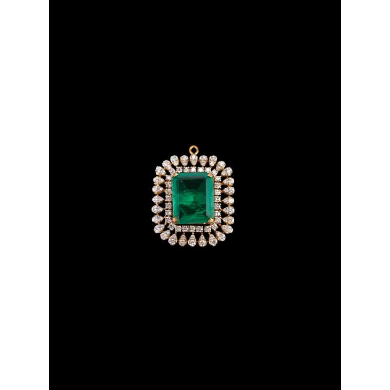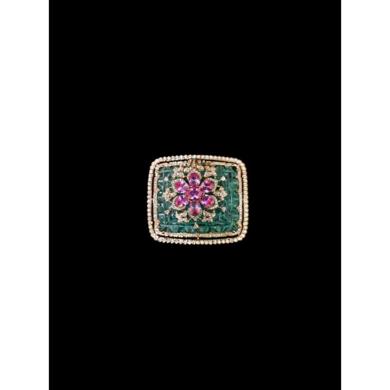 GROSS WT:23.980 DIAMOND WT:1.21 PINK TOURMILINE WT:2.61 EMERALD WT:64.58