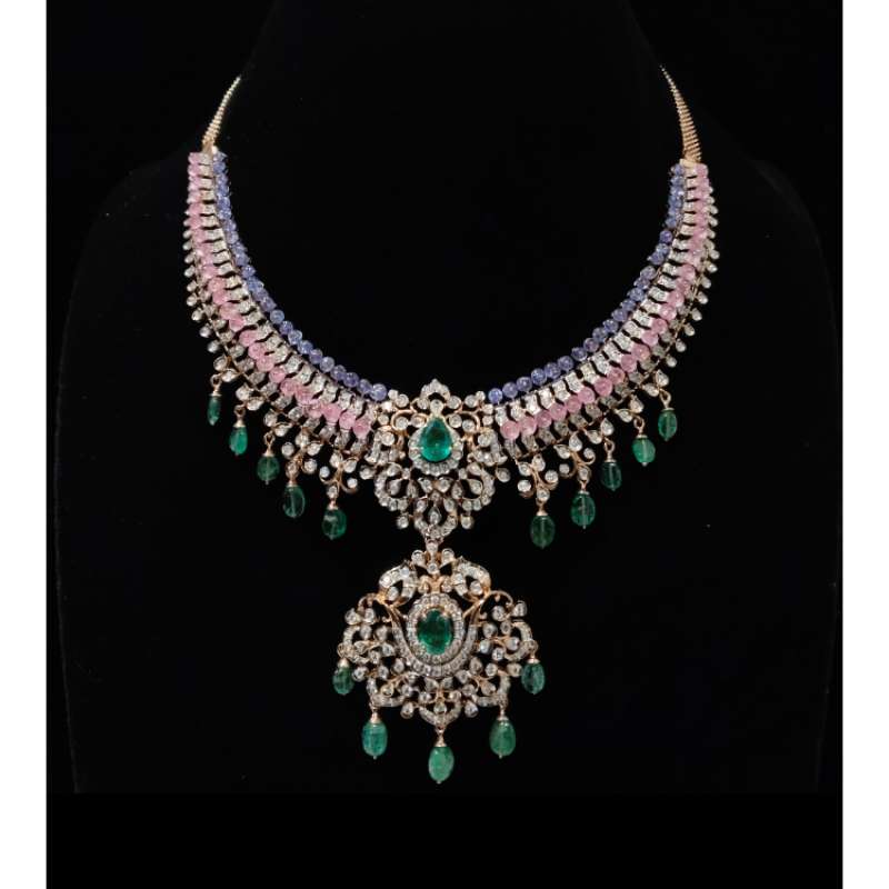 GROSS WT : 74.580 GRAMS DIAMOND WT : 5.06 CRT GREEN BEEDS WT : 10.74 CRT RUBY WT : 5.06 CRT PINK BEEDS WT : 10.01 CRT ONEX WT...
