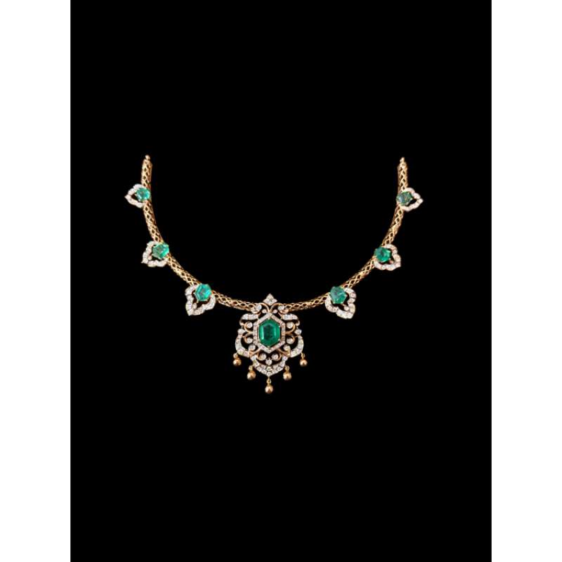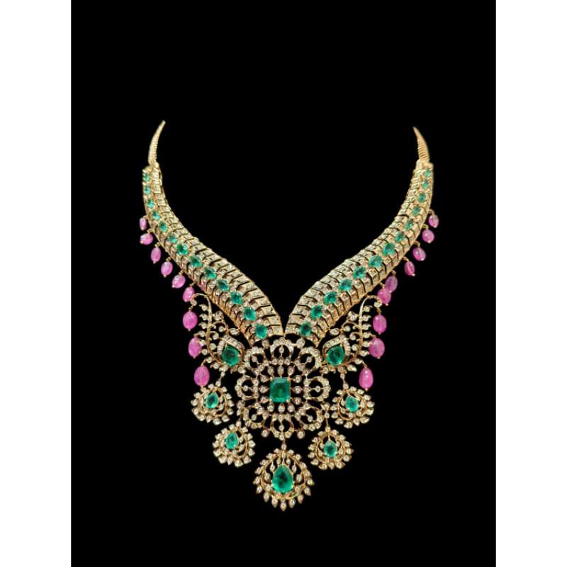 GROSS WT:63.740 DIAMOND WT:4.97 EMERALD WT:16.06 RUBY WT:2.53 PINK BEEDS WT:19.66