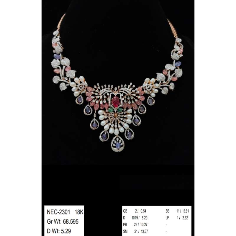 GROSS WT : 68.595 DIAMOND WT : 5.29 GREEN BEEDS : 0.54 PINK BEEDS : 10.27 S MOTHI : 13.37 BLUE BEEDS : 5.81 LEAF : 20.01 ...