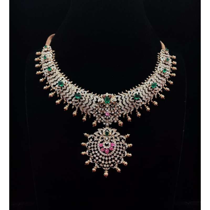 GROSS WT : 91.600 GRAMS DIAMOND WT : 7.78 CRT RUBY WT : 2.18 CRT ONEX WT : 6.45 CRT PINK BEEDS WT : 2.68 CRT