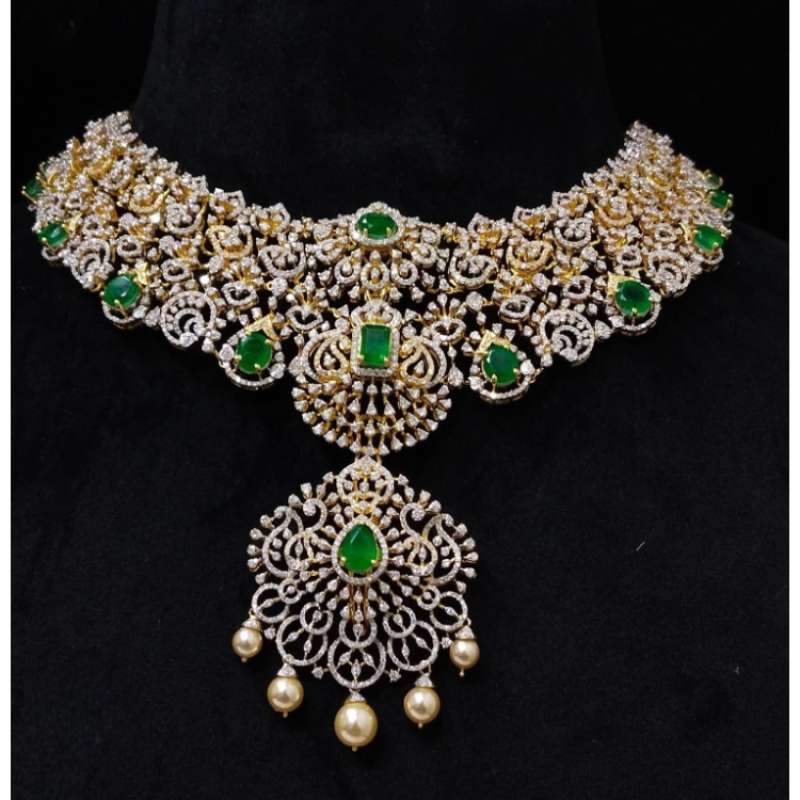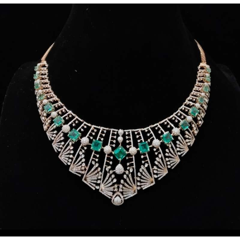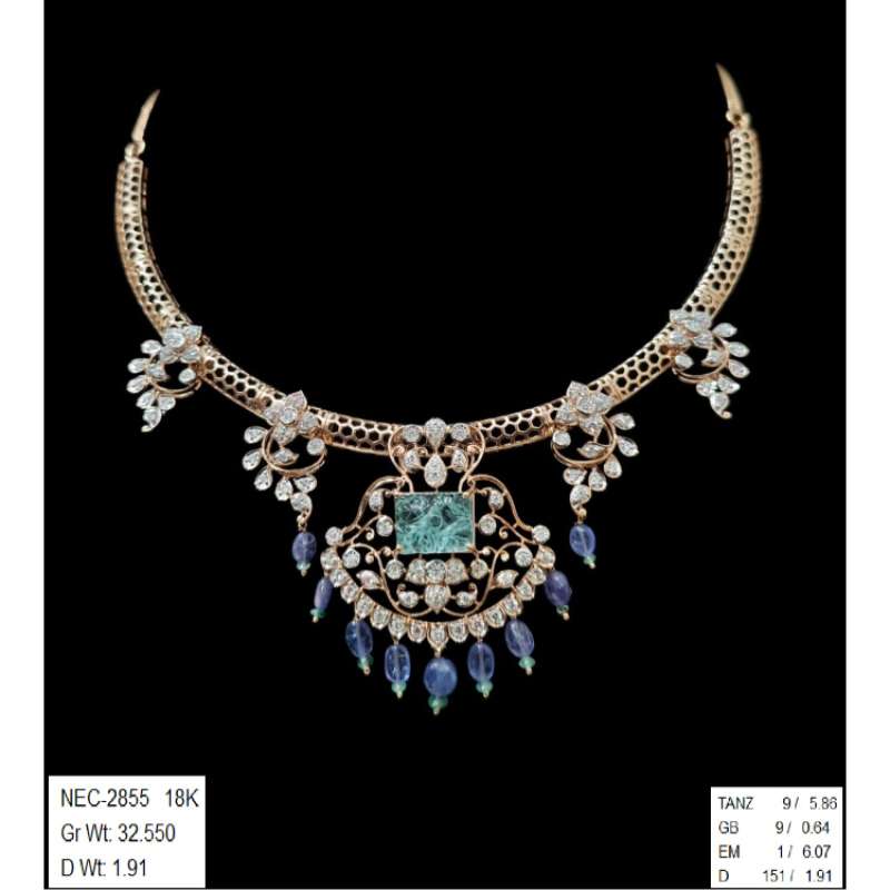 GROSS WT : 32.550 DIAMOND WT : 1.91 TANZONITE : 5.86 GREEN BEEDS : 0.64 EMBRALD : 6.07
