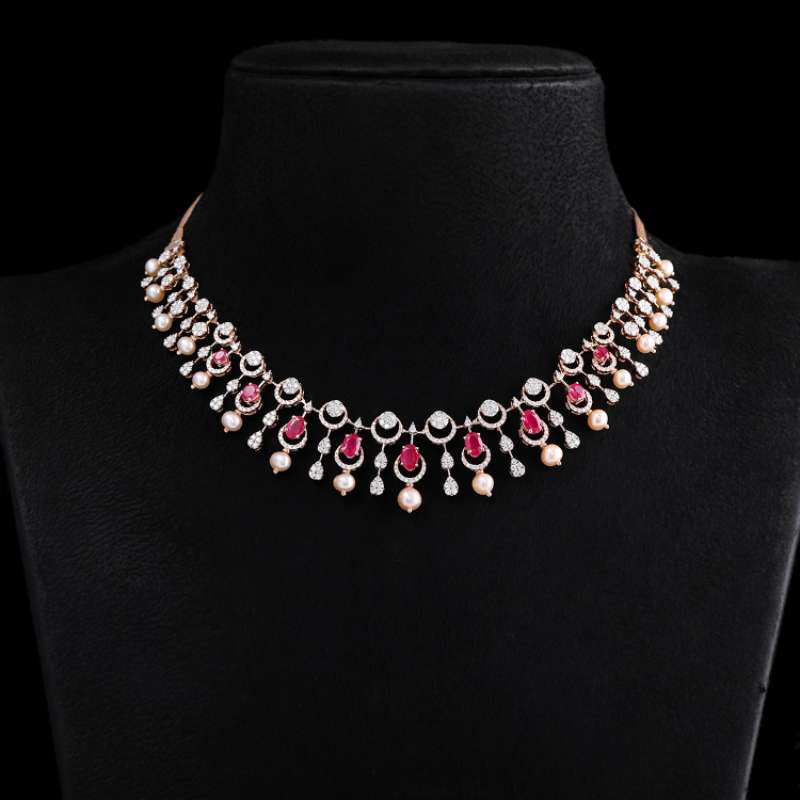 GROSS WT : 41.550 GRAMS DIAMOND WT : 4.04 CRT RUBY WT : 5.14 CRT PEARLS WT : 34.04