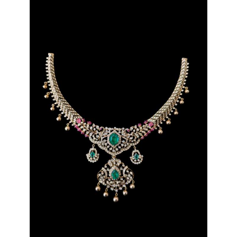 GROSS WT:43.140 DIAMOND WT:3.70 RUBY WT:5.67 PINK BEEDS WT:5.01 LAB GROWN GREEN WT:6.18