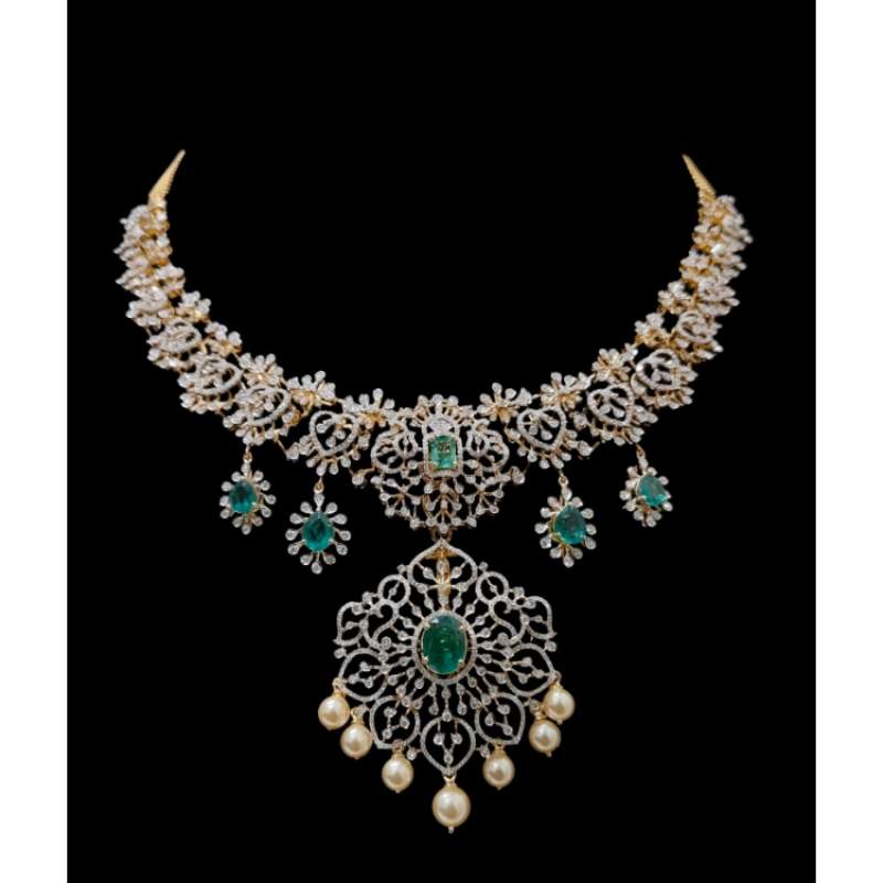 GROSS WT : 99.455 GRAMS DIAMOND WT : 12.26 CRT MIXES SAPHIRE WT : 18.68 CRT PINK BEEDS WT : 2.47 CRT MOTHI WT : 3.25 CRT
